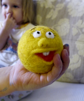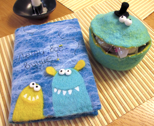 Все сделаны на подарок. 1) К мистеру в шляпе сделала обложку на ежедневник: Вложение: Время очень поджимало, ваялась буквально за 2 вечера и один обед, дочь активно помогала, поэтому некоторые буквы вышивала по несколько раз и вообще корявенько получилось ![]() Сама обложка - мокрое валяние, а монстрики набиты в сухую. 2) еще одна брошка, эта - для маленькой принцессы (надеюсь она ее носит). Вложение: была еще брошка-монстрик для брата принцессы, но похоже я забыла ее сфотографировать 3) колобок для малыша получился сам не знаю, как, сначала собиралась погремушку сделать, а потом понеслось ![]() Вложение: Прошу не обращать внимания на девочку ковыряющуюся в носу :)