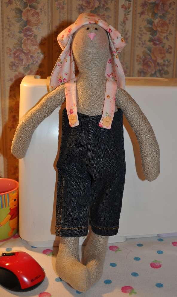 Девочки, решила к вам присоединиться )) Вот моя первая игруха - тильдовский заяц. Косоватый, правда немного )))) Одежку сшила - получился мальчик, а изначально задумывалась девочка..в общем, шью кофточку девчачью ))) потом доработанную Зайчиху еще выложу )) Не судите строго, первый блин, как говорится