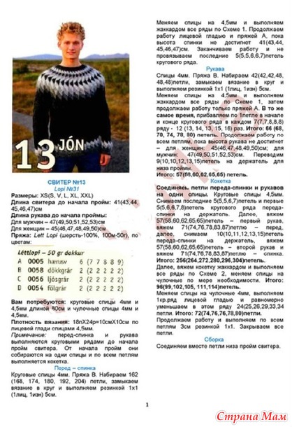 Я первый свитер вязала в совместнике дочке. Я выше давала ссылку на группу. Совместник находится в открытом доступе. Этот свитер я вязала по схеме из журнала. Все нашла сама в интернете. Сын мне только фото свитера прислал. Могу схему выложить. Только качество не очень. Не все буквы видно. В этом описании только не очень понятно как подмышки соединяются. Но я порылась и нашла другие описания исландских свитеров и сопоставила уже...