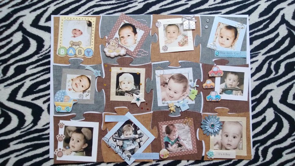 . Я брала по месяцам, у нас фотки по датам отсортированы, я по каждому месяцу сына выбирала 3-5 самых понравившихся фоток. Потом с мужем сели вдвоем, из 3х фотографий махом выбиралась одна и применяли к ней 2 вида сепии, чтоб фотки не были сильно разношерстными по цвету. Распечатала стандартные фото 10*15, потом вырезала в плотной бумаге квадрат 6*6см, получилась своеобразная рамка и накладывала на фотку, смотрела как лучше обрезать.