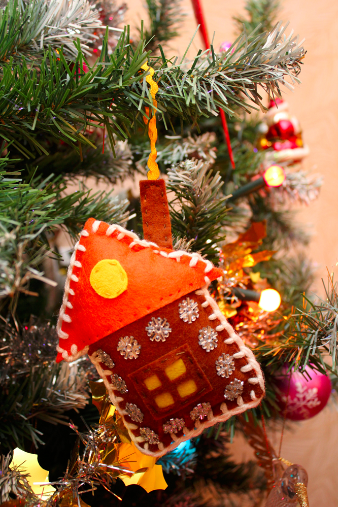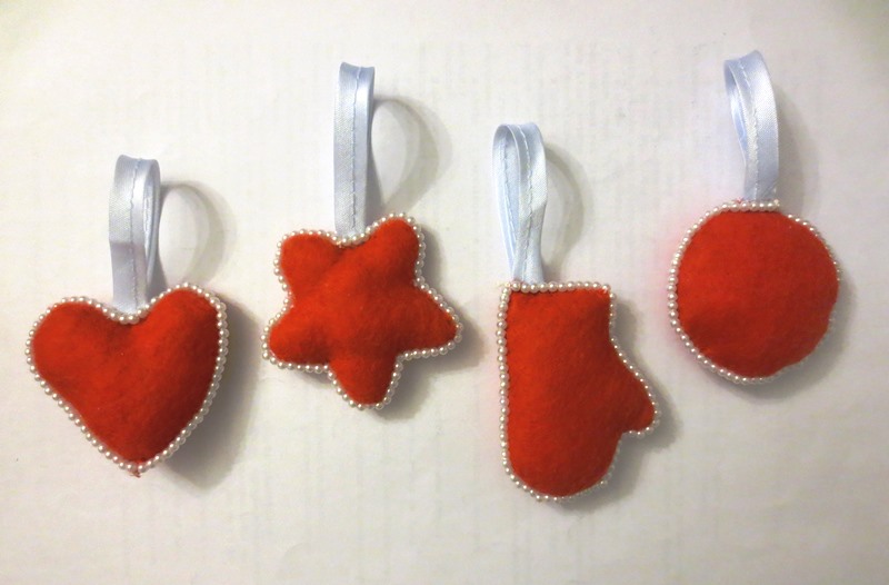 Ёлочные игрушки из фетра и бус (сшила куме в подарок)