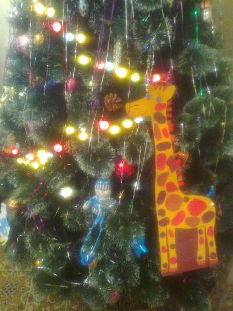 natasha963 писал(а): : 8.12.2013 23:59 Geren Ой, вы уже елочку нарядили, я вот тоже подумываю квартиру нарядить. Жирафик хорошенький, полностью из бумаги? Жирафик из плотной бумаги- вырезка из книги школы семи гномов. Но он был голый, все пятна и гриву и хвост, ребенок сам вырезал и наклеивал под моим чутким руководством)))) потом он валялся везде этот жираф, а вчера елку наряжали ребенок вспомнил про этого жирафа и повесил его на елку