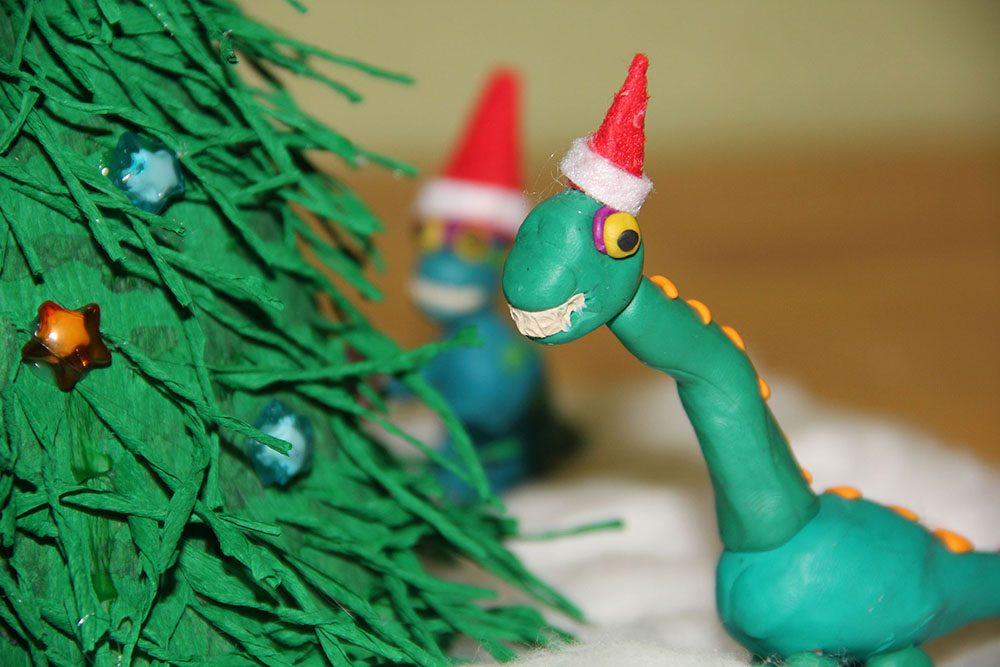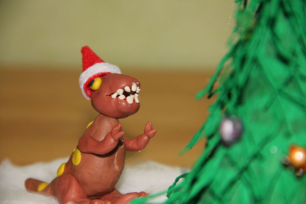 Перенесла в новогоднюю темку, здесь актуальнее! Очень оригинально и красиво! Динозаврики, понятно, из пластилина, а ёлочка из чего? |