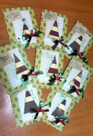 Всем привет! для мамы Влада Якимова изготовила 100 открыток! Они очень простые, поэтому больше послужат как идея для новогодних открыток, чем как МК. Но очень хочется вам их показать.