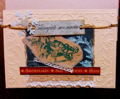санту с упряжкой оленей по трафарету штемпельной подушкой окрасила. у меня есть вырука такая - вот она и послужила трафаретом.