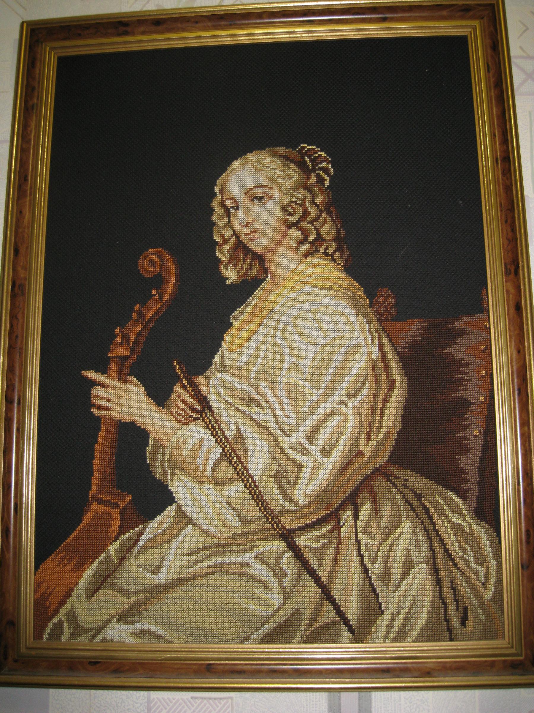 Эту "Золотую маску" она подарила подруге на юбилей - естественно оформив как надо кстати, она не может вышивать на черной канве, поэтому вышивает на белой - т.е. черное поле - тоже вышитое |
