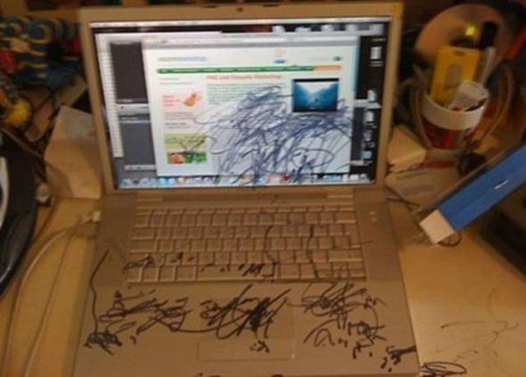Есть у меня крестница, так вот сидели мы у кумы компанией, дети были в комнате. И крестница моя играла с телефоном одного из друзей. Тут у него звонит телефон, а на экране ничего, темнота. Телефон новый, не поверите он повез его в салон, где покупал, предъявлять типа экран погас и не работает. Мы сами не заметили сперва, а в салоне выяснили, что крестница полностью зарисовала ему экран телефона черным маркером. Перед продавцами было стыдно ![]()