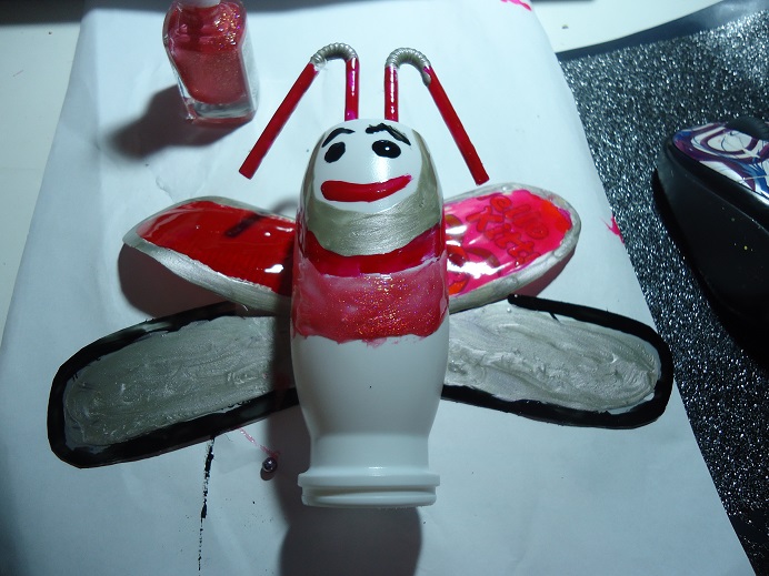 Вложение: Вложение: ПЧЕЛА))из одноразовой тарелки основа,скотча,крылья из пл.бутылки,крепление проволкой