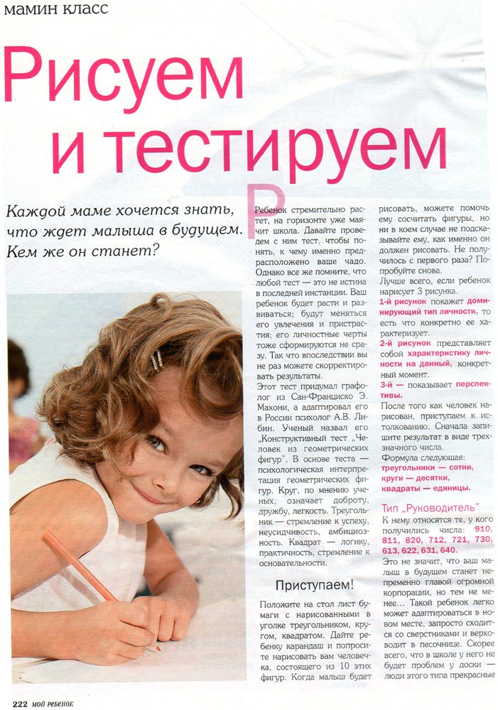 У меня, вот, тоже есть тест, по которому можно понять к чему предрасположен ваш ребенок, что его может ждать в будущем.