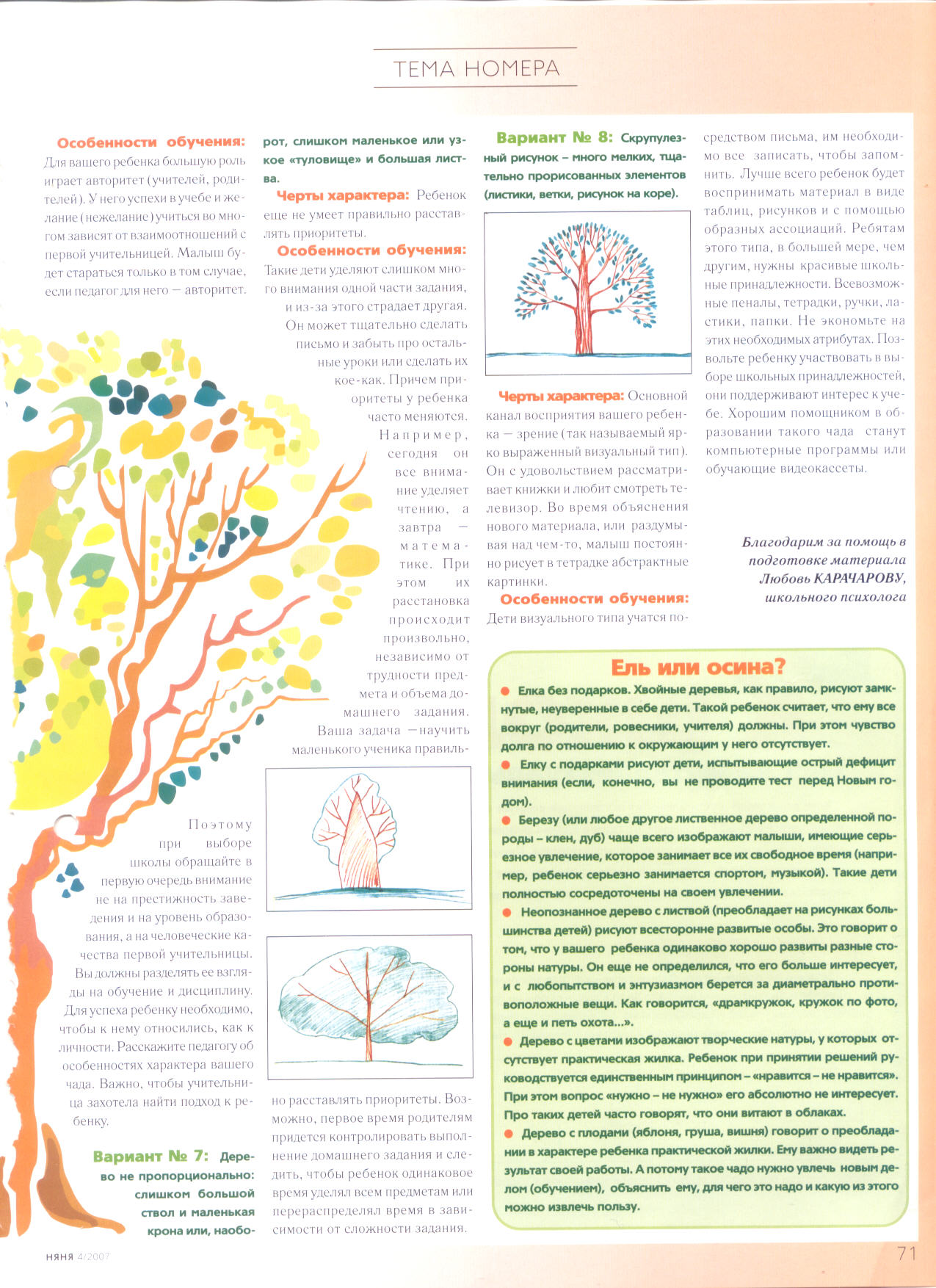 Нарисуй дерево Данный тест позволит определить готовность малыша к школе))) Журнал "Няня" №4 2007