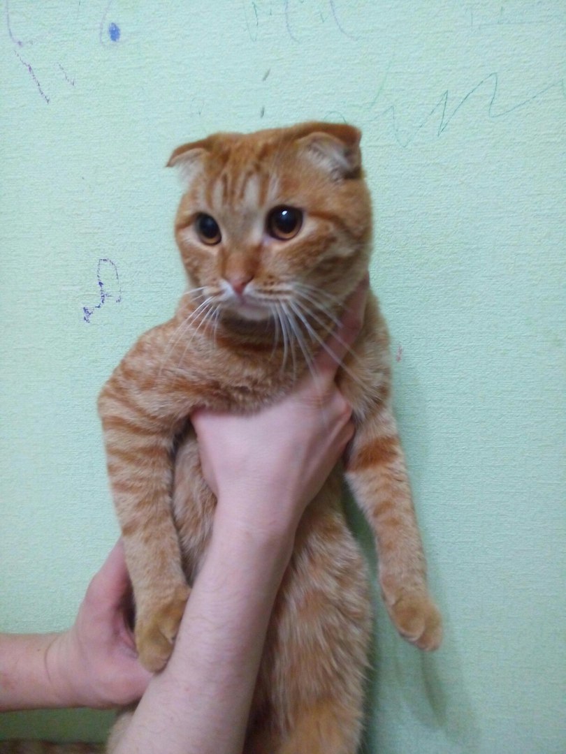 Всем привет, девочки кому нужен кот для вязки? рыжий кот, шотландец вислоухий, но он не чистокровный, документов тоже никаких нет. Нам просто дали такого конка, который сейчас просто орет так хочет кошку.