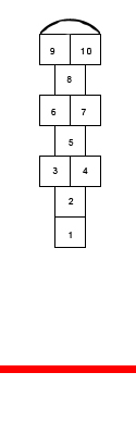 Красная черта, линия за которой стоят все игроки. Каждый игрок перед игрой берет свой «камушек», у нас были в их роли и камушки, и маленькие веточки или кусочки доски, кусочки кирпичиков, в общем, все, что можно кинуть, и оно не укатится. В процессе игры от красной черты кидается «камушек» на номер класса, в который переходишь, отпрыгав предыдущий. Мелом рисуется игровое поле из квадратов примерно по 30х30см каждый и нумеруются от 1 до 10. Начинаем с того, что от красной черты кидаем свой «камушек» на клеточку с единичкой. Если попали, то прыгаем одной ногой на эту клеточку, а дальше то на одной ноге, то на 2х (одной на одинарные цифры, 2мя на сдвоенные). Допрыгав до 10, разворачиваемся в прыжке и возвращаемся назад до 1. Вернувшись, уступаем место следующему игроку. Тот кидает свой камушек на 1, и т.д. Когда все отпрыгали 1 класс, первый игрок кидает камушек на двоечку, и прыгает снова до 10 и обратно, на обратном ходу поднимает камушек и с ним возвращается за красную линию, уступив ход второму игроку… и так до 10 класса! Если камень не докинут или попал в «котел» (полукруг в конце классиков), то или пропускаем ход, или возвращаемся на предыдущий уровень. Думаю тут правила можно обговорить (придумать самим). Выигрывает тот, кто первым успешно закончил 10 классов!!! честно говоря со скрипом вспомнились правила, интернет мне в помощь! |