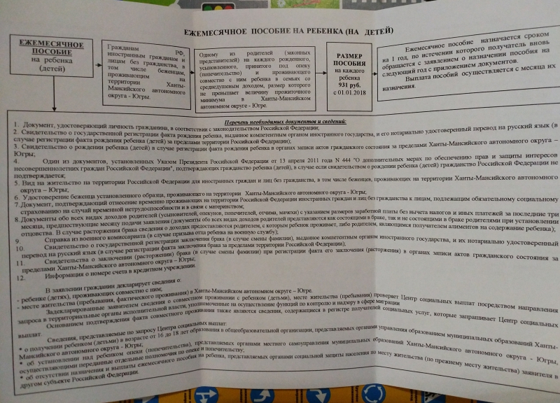 Документы для оформления: *заявление; *документ, удостоверяющий личность гражданина, его гражданство; *свидетельство о рождении ребенка (детей); *один из документов, подтверждающих гражданство ребенка (детей), в случае если свидетельством о рождении ребенка (детей) гражданство РФ не подтверждается; *свидетельство о рождении (усыновлении) предыдущего ребенка (детей); *свидетельство о заключении (расторжении) брака (в случае смены фамилии). *справка с паспортного стола, подтверждающая десятилетний период проживания в хмао Если необходимо: справка о совместном проживании ребенка (детей) с заявителем (справка о составе семьи). Прием документов осуществляется в МФЦ г. Сургут, Югорский тракт 38, РКЦ "Сити Молл" cвернуть наверх