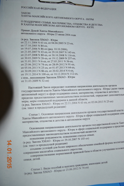 Сегодня была в соц службе оформляла своё и за одно поинтересовалась нововедениями. Специалист мне так и ответила, что ДА, теперь нужно иметь прописку в ХМАО 10 лет для получения пособия с 1.5 до 3 лет. Я спрашиваю у неё: "дайте мне инфу, я дома уточню и почитаю подробно", она мне ксерокопию первого листа сделала