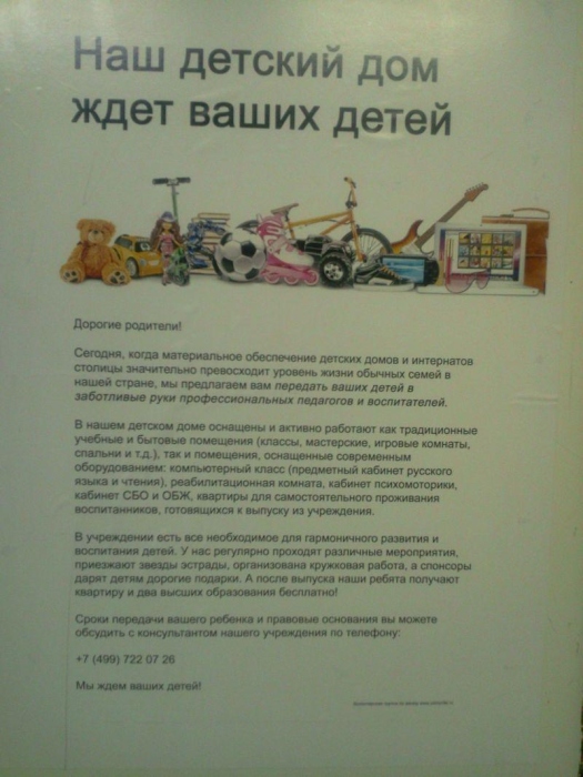 В Москве появились рекламные плакаты, призывающие родителей отдать своих детей в детский дом. Вложение: http://www.livejournal.ru/themes/id/39629 http://www.vesti.ru/doc.html?id=630451 ![]() |