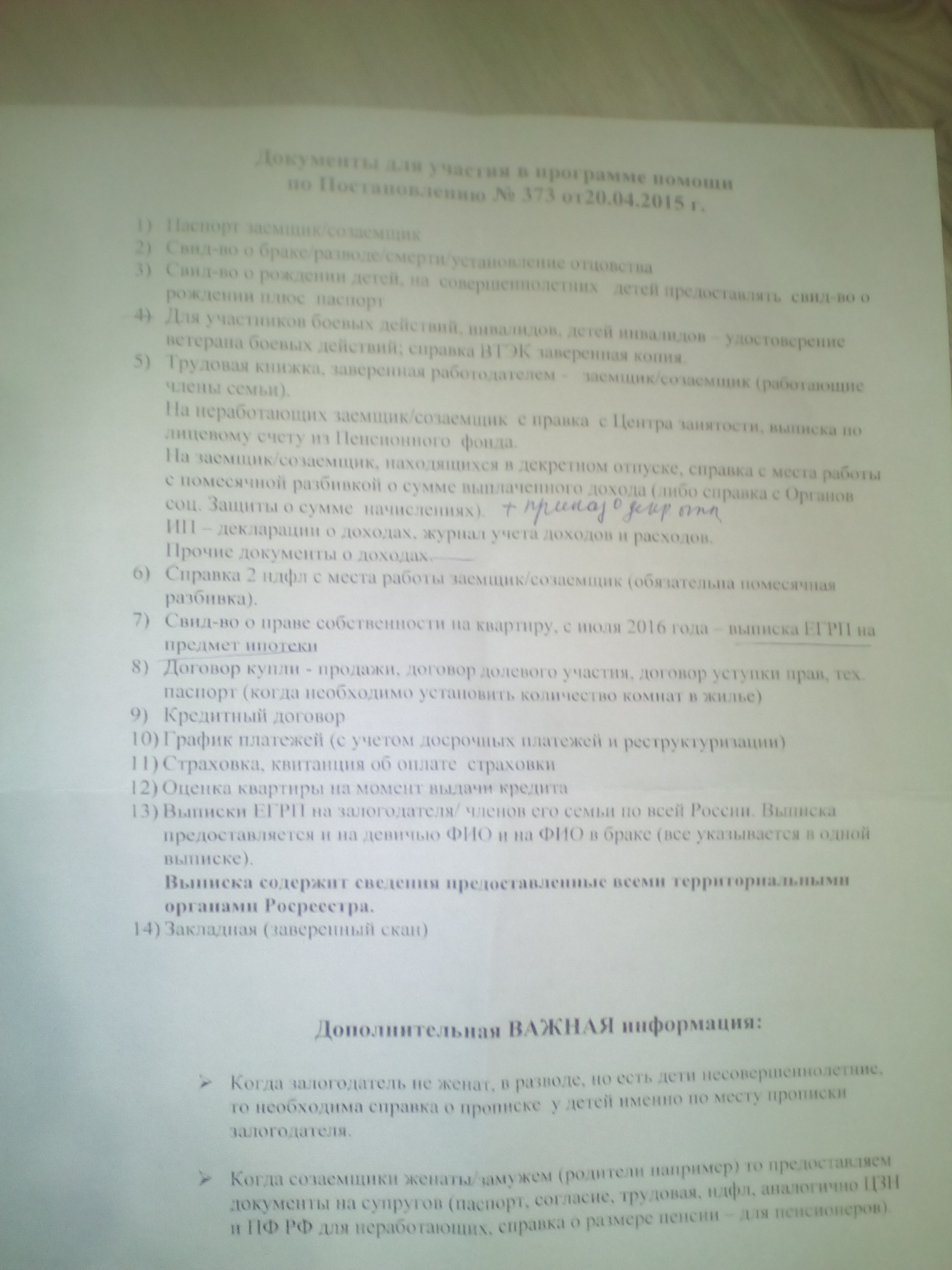 emma писал(а): : 28.02.2017 20:24 zluka писал(а): : 28.02.2017 16:48 farikovna писал(а): : 28.02.2017 15:16 Добрый день всем !Девушки,здесь ,в чате,ЕСТЬ ХОТЬ ОДНА СЕМЬЯ КОТОРАЯ УЖЕ ПОЛУЧИЛА ЭТУ ПОДДЕРЖКУ ОТ ГОС -ВА ПО ПОСТАНОВЛЕНИЮ 373??? ![]() Есть ![]() Добрый вечер. Вам приходила смс с номером заявки после сдачи документов? Или как еще узнать приняли наше заявление или нет? Нет, Ничего не приходило. С банка позвонили сами,сказали что одобрено. Ждать перечисления. На след день уже перечисление было, в понедельник записались в банк на подписание допника и получение нового графика |
