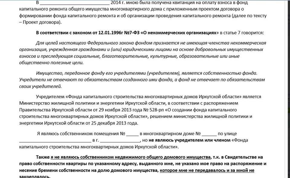 Zvezdoчka писал(а): : 9.11.2016 14:54 Laska писал(а): : 9.11.2016 13:29 Zvezdoчka Но согласно жилищного кодекса собственники квартир обязаны содержать общедомовое имущество. Поэтому этот аргумент вряд ли сработает. А вот насчёт добровольности взносов- вполне логичный аргумент. Интересно было бы почитать, какую правовую оценку дали фсб и остальные адресаты. На сколько мне известно, трубы, крыши и т.д. к общедомовому не имею ни какого отношения. Как-то у меня оторвало обшивку на крыше, мне ее делала ук за свой счет, а не за мой. На фото консультация юриста, она том четко об этом говорит. На содержание жил фонда мы и так все платим ежемесячно, я например плачу 2000 - это как раз и есть то, что совместное |