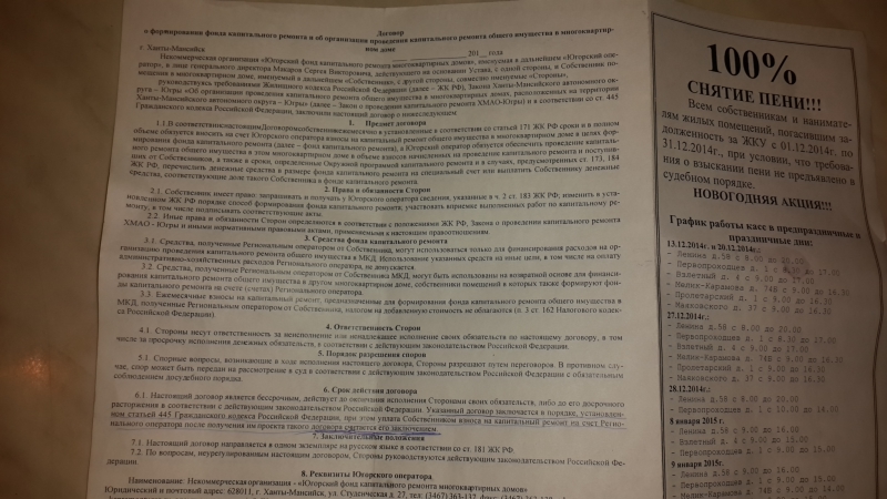 "Об организации проведения капитального ремонта общего имущества в многоквартирных домах, расположенных на территории Ханты-Мансийского автономного округа - Югры" http://www.rg.ru/2013/07/19/hmao-zakon54-reg-dok.html http://kapremontugra.ru/ http://kapremontugra.ru/index.php/for-owners/questions Часто задаваемые вопросы Выставляемый в ежемесячных квитанциях счет может отличаться у жителей разных домов – для определения суммы ответственные структуры используют следующие данные: Развернуть/свернутьВозраст постройки. Само собой, что для ремонта дома, сданного в прошлом году, не требуется собирать большую сумму. И наоборот – для дореволюционных построек размер взноса, логично, будет выше.