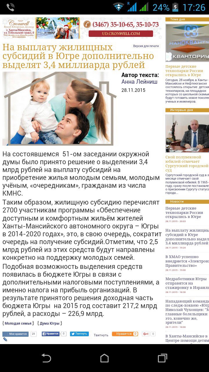Девочки, читали новости: На состоявшемся 51-ом заседании окружной думы было принято решение о выделении 3,4 млрд рублей на выплату субсидий на приобретение жилья молодым семьям, молодым учёным, «очередникам», гражданам из числа КМНС.