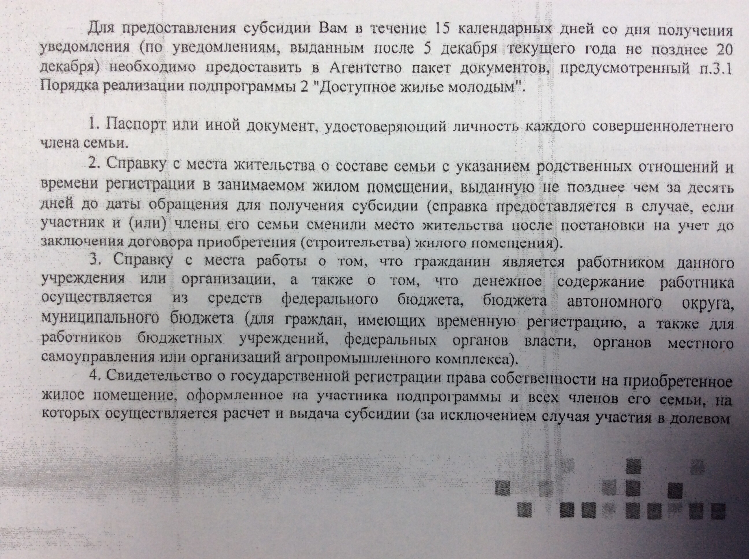 Не могу найти уведомление, точного названия субсидии не вспомню. Выдавалась на каждого члена семьи в районе 280-290 тыс. Оформляли в департаменте гор хозяйства, ждали ровно год уведомления, переводили деньги на спец счет, около полугода частями, как только все перевели, пересчитали ипотеку. Вечером пороюсь в папках, может сохранилось где то само уведомление. И с датой супруг поправил, в 2013 мы ее получили, а не в прошлом году.