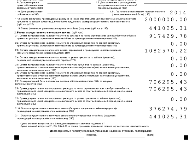 Спасибо. Еще вопрос -составляю декларацию остаток имущ.вычета и проценты за 3 года и получилось вот так (файл). То,что суммы п.1.13 и 2.11 совпадают это правильно?