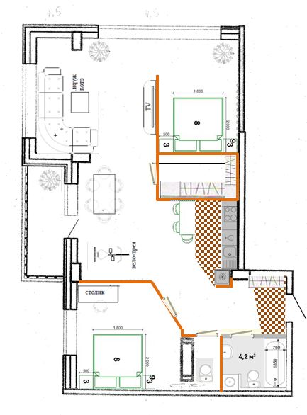Девочки, знающие про перепланировку, есть вопрос к вам. На данный момент разрешено ли законом переносить часть кухни в коридор? Т.е. коммуникации перенести туда, где по проекту коридор. При этом не ставить перегородку, разделяющую коридор с комнатой, по сути превратить комнату в кухню, но с коммуникациями на площади коридора. (надеюсь понятно объяснила) Вот как Катара нарисовала. Это можно согласовать?