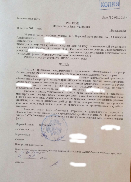 Вынесено решение суда в пользу фонда капремонта. Но в комментариях прочитала вот что