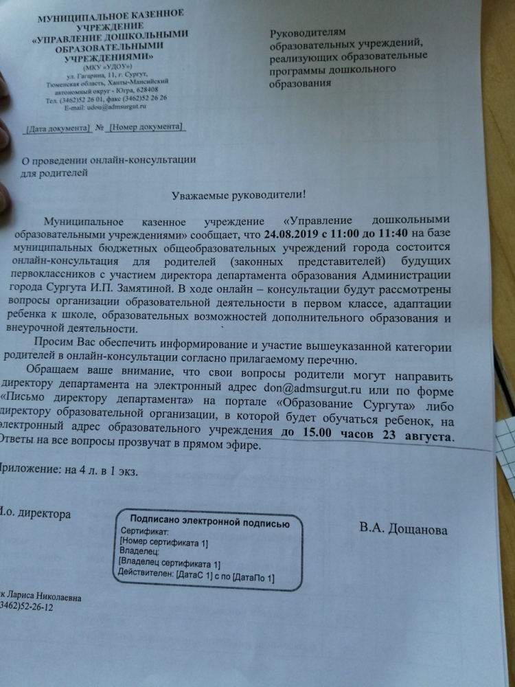![]() 24 августа 2019 года в 11.00 часов в образовательных организациях города состоится ежегодная онлайн-консультация для родителей (законных представителей) будущих первоклассников. Консультация пройдет в режиме видеоконференции, где родителям расскажут об особенностях организации образовательной деятельности в первом классе, образовательных возможностях дополнительного образования и внеурочной деятельности обучающихся в муниципальной системе образования г. Сургута. Родители (законные представители) получат квалифицированную информацию о том, как помочь ребенку адаптироваться к регулярному обучению в школе. Свои вопросы родители могут направить директору департамента на электронный адрес don@admsurgut.ru или по форме на портале «Образование Сургута» либо директору образовательной организации, в которой будет обучаться ребенок, на электронный адрес образовательного учреждения до 12.00 часов 23 августа. Ответы на все вопросы прозвучат в прямом эфире. |