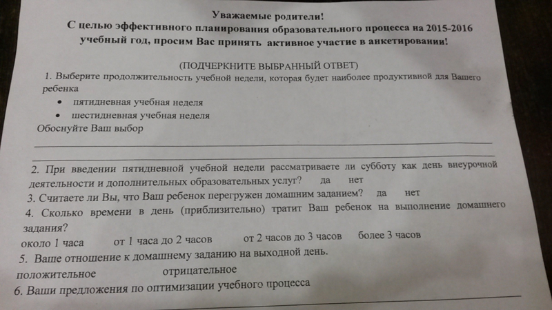 И вот сегодня сын принес новый опросник из школы: