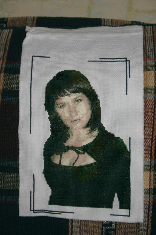 да есть вот такая волшебная программка которая преобразует фото в вышивку,и потом все поэтой схемке,вышивала долго ,но это стоило того ,подружка была рада подарку