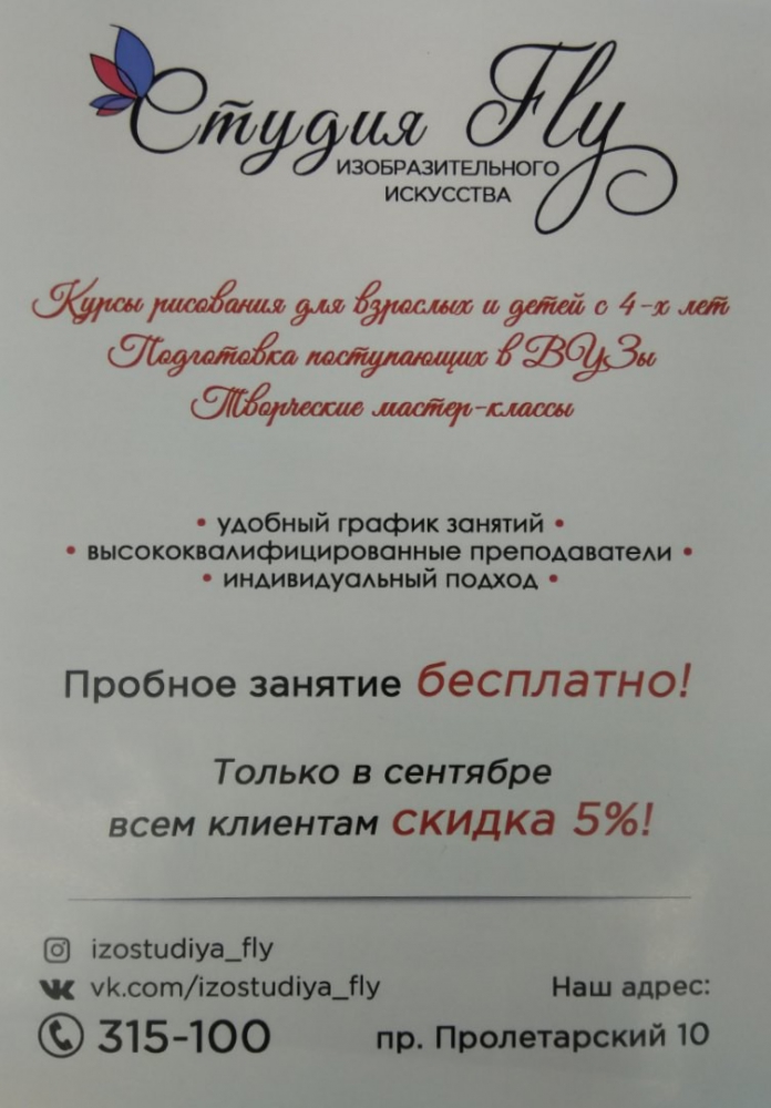 Вожак шопоголиков группа по ул. Энгельса, 7 в художестенной школе. Расписание неизвестно,т.к. группу не набрали пока. 4 урока в неделю по плану. В прошлые годы наблюдала за расписанием - уроки были сдвоенные. Преподаватели там все замечательные . если есть вопросы, то можно уточнить в учебной части. Всегда отвечают в часы приема (см. парой постов выше). телефон: 8 (3462) 287-672 занятия по курсу "Лепка" платные, около 2.6 тысяч рублей в месяц. ◊ Последний раз редактировалось Ленада 28 авг 2018, 19:06, всего редактировалось 1 раз. |