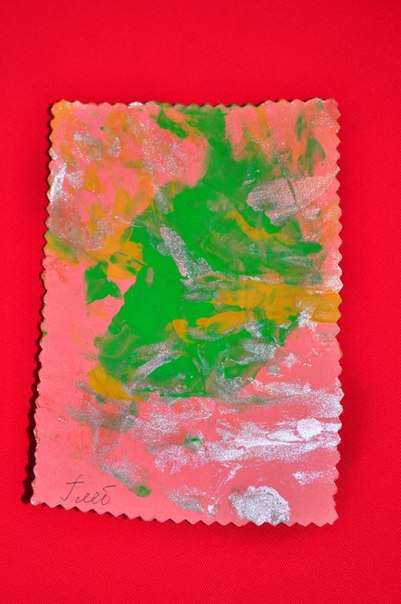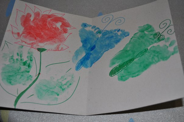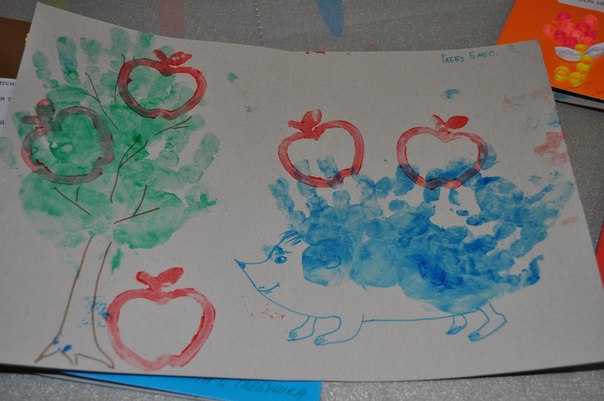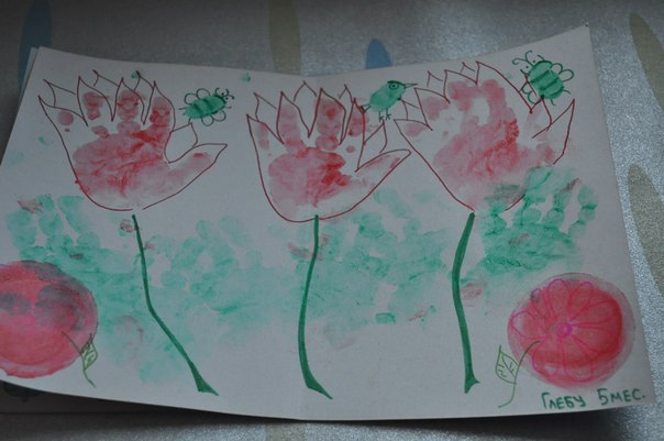 а вот наше художество Рисовать начали около 4-х месяцев. Вот одни из первых готовых работ -Открытки на Новый год для родных. Глебу 5 месяцев.