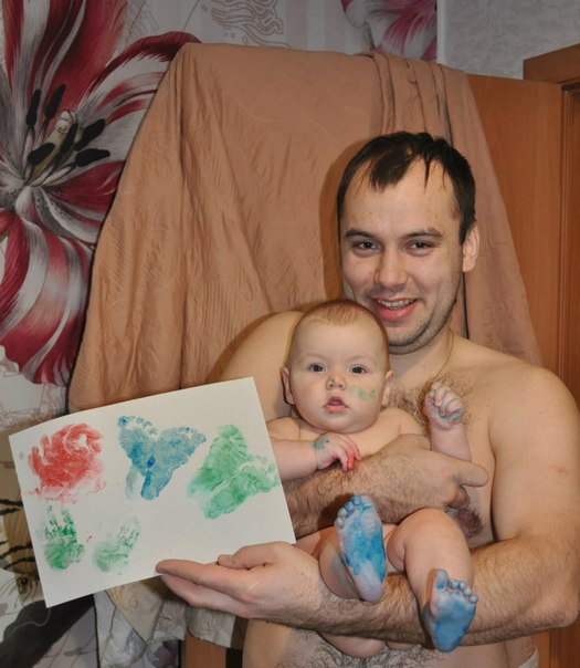 Они разве бывают не активные , они все такие шустрики. Энергии та еще хоть отбавляй.А мы как-то не заворачиваемся, что все уделает и не разу не уделывал. Растелаю на всю гостиную рулон бумаги и вперед ляпать сначала на бумаге потом себя всего и бежим в зеркало глядеть--- КРАСОТА!!!! |