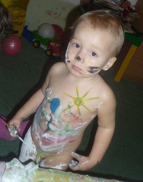 Очень хочу поделиться фотками сыночка Ильшки моей подруги. У нее старшая дочка 5 лет и младший сын 2,5 года. Вот так старшая сестра немного порисовала на своем брате, ну и Илюшка конечно тоже любитель порисовать. Прямо боди-арт)))